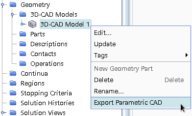 In the object tree, right-click the node and select Export Parametric CAD.