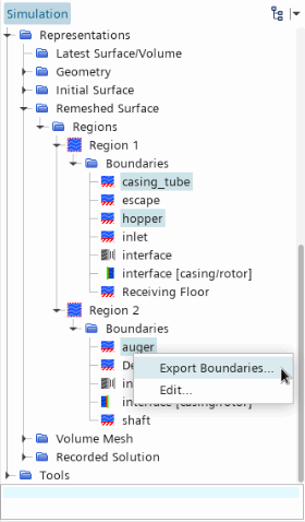 并非所有格式均会保留边界名称:只有两个 pro-STAR 格式和 NASTRAN 格式会保留实际名称(其中,重复名称会附加一个整数索引);PATRAN 和 FELISA 格式将保留单个边界定义(而不会保留名称);立体光刻格式将所有边界合并成一个边界。区域定义不会以任何格式保留。