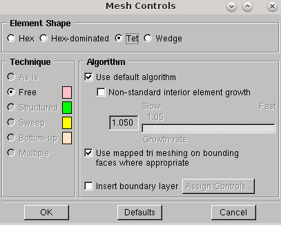 在网格控制对话框中,将单元形状更改为四面体。保留默认选项,然后单击确定。