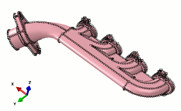 - 在视区中,按住 <Shift> 键,然后选择歧管和分区出口部分的主部件。选择了这两个部件后,单击完成。