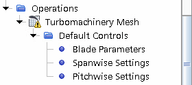 You define the blade, spanwise, and pitchwise parameters by setting the Properties available within each node for the Turbomachinery Mesh operation node.