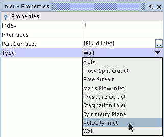 设置情况 在本教程的第一部分,将使用稳态层流 (Re = 500) 运行模拟。 默认情况下,所有边界都设置为壁面。修改入口和出口的边界类型: 选择区域 > 流体 > 边界 > 入口节点,然后将类型设置为速度进口。 入口边界旁边的图标将发生变化,表示它现在已成为速度入口边界。 选择出口边界节点,然后将类型设置为压力出口。 修改后的边界节点如下所示。