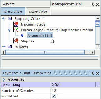 通常,基于残差值和监视量指定停止条件,而不是安排分析运行一组迭代将非常有用。 对于该模拟,定义一个停止条件,用其检查多孔区域压降监视器是否已达到一个稳态值。
