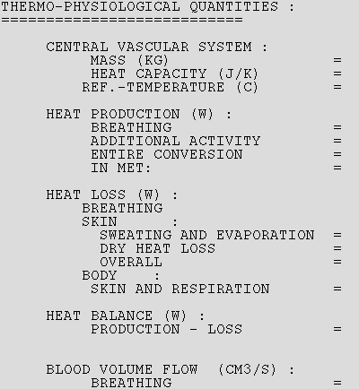 passenger_tim_xx.txt 文件的这一部分包含运行开始时与乘客血管系统、热生成和热损失相关的信息。