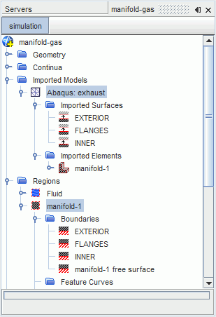 导入 CAE 模型时,Simcenter STAR-CCM+ 识别在输入文件中定义的几何单元,并创建相应的体积、壳或梁区域。 导入的表面、体积、壳和梁也列在相关导入的 CAE 模型节点下。