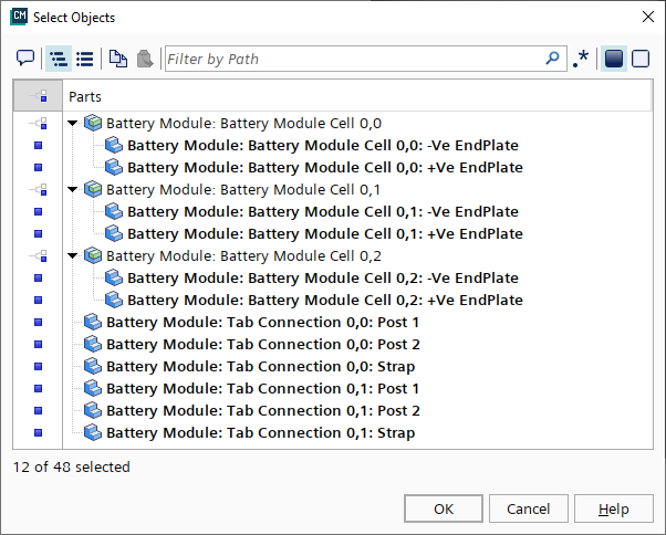 - 在选择部件对话框中,单击列选择以选择所有部件。