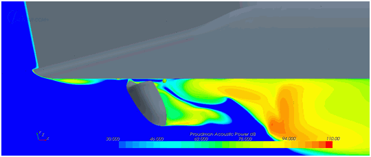 - 绘制网格截止频率,来判断声源区域中的加密是否求解 3-5 kHz 区域中的频率。 实际上,需要尺寸小于或等于 2 mm 的网格单元。 适当地加密并将求解映射到加密的网格。可以从声学相关性较大的区域中标识声源区域。 将 Proudman 用于体积源: