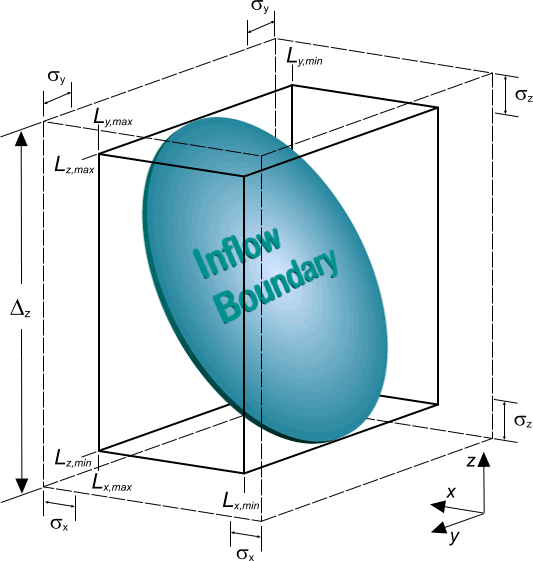 间隔限制基于流入区段的几何限制,如下图所示, 是坐标方向 的平均涡流长度尺度。
