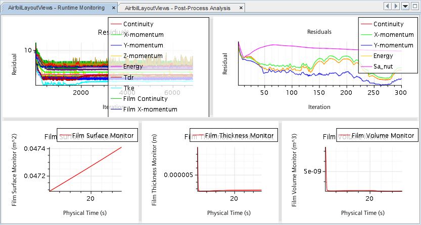 布局的另一个功能是,它们支持在一个可视显示中监视多个正在运行的模拟。这里可添加来自另一个模拟的残差图,将其与现有的来自翼面结冰模拟的残差图一起显示。
