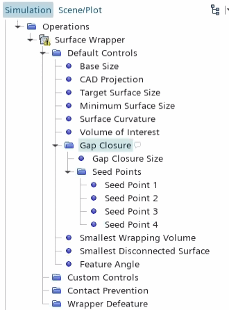 间隙封闭尺寸尺寸类型 绝对值 绝对尺寸 32.5 mm 间隙封闭尺寸基于冷却通风口的尺寸。为关闭冷却通风口,选择了 32.5 毫米的间隙封闭尺寸。要封闭螺旋桨外壳中的间隙,需要在每个螺旋桨外壳中定位种子点。