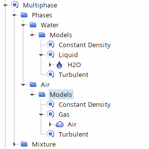 组合框 模型 材料 气体 状态方程 恒密度 您可以将水与空气的材料特性保留为默认值。