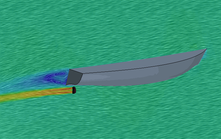 本教程模拟船舶在螺旋桨产生推力的作用下穿过静水的运动。螺旋桨布置在船尾中部,转速为 2300 rpm。由于涡流和压力梯度的原因,这些类型模拟中的螺旋桨效力会显著影响船身性能,因此非常重要。