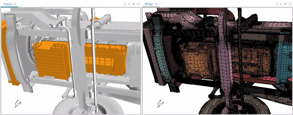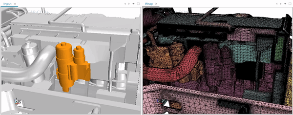 在输入场景中设置一个显示器,对需要更精细包面的零部件着色。标识需要重新包面的零部件后,可以将其添加到此显示器。