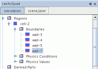 同样,如果在 cavityQuad 窗口中选定其他边界节点,与此边界对应的部件也会在图形窗口高亮显示。