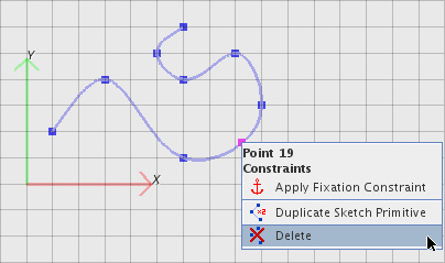 如果要在通过现有点之后继续添加样条曲线点,可在单击现有点之前按住 <Ctrl> 键。此操作能够创建通过草图中的现有点的样条曲线。