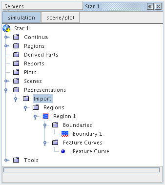 当将表面导入为区域时,会在模拟树中的节点下创建表示。