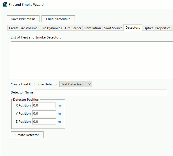 探测器选项卡可用于将热探测器或烟雾探测器包含到烟火模拟中。