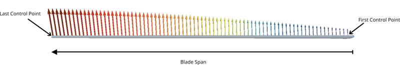 运动文件包含沿叶片跨距的控制点处一系列方位角的位移信息。