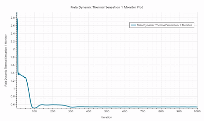 在这种情况下,最终的 Fiala 动态热感约为 0.531。将此全局值与 ASHRAE 7 点标度进行比较,您可以确定,驾驶员人体模型总体介于中等和微暖之间。