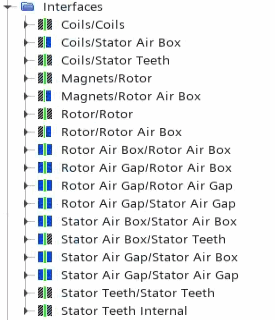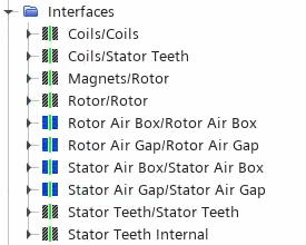The starting simulation includes predefined interfaces between the solid regions. For the newly created fluid regions, you require additional interfaces. Each interface has either an in-place, periodic, or repeating topology.