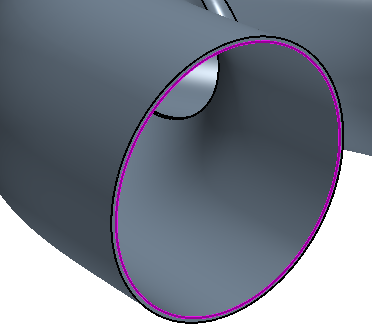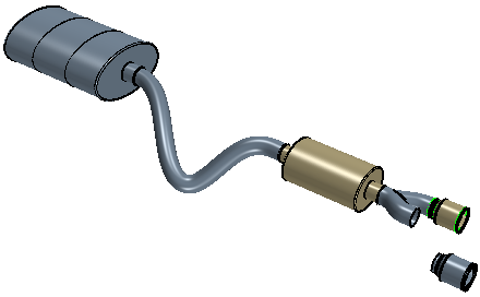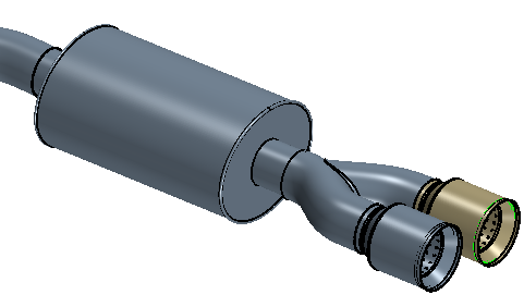 在本教程中,某一尾饰管错位。要将该部件移回其在尾管一个分支末端的原始位置,必须创建两个坐标系,然后使用转换操作进行移动。