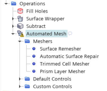 自动网格操作确定生成面网格和体网格的网格化模型及控制条件。