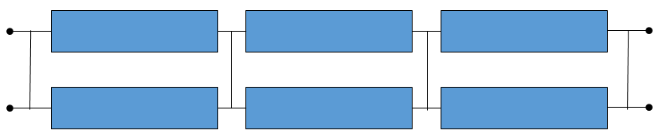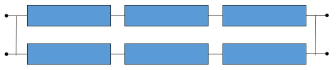 - 在并联优先拓扑中,多个并联电芯以串联方式相连。每个单元中连接的电池电芯数为并联数,而每个模块内串联的单元数为串联数。以下示例说明了串联数 = 3 且并联数 = 2 的模块的并联优先布局。