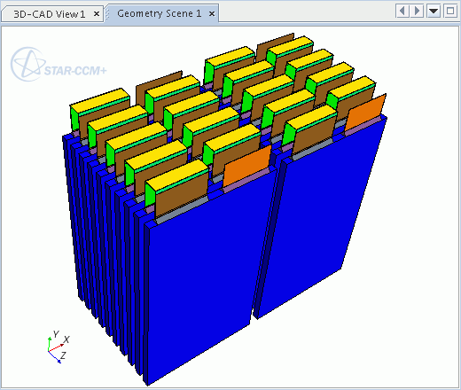 在 Simcenter STAR-CCM+ 中,可将电池电芯组以电气方式串联或并联在一起,形成电池模块。一个模拟可包含多个电池模块。