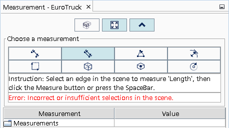 Instructions appear that tell you which entities you must choose in the 3D-CAD View scene for that measurement. - In the 3D-CAD View scene, select the entities specified by the measurement instruction.