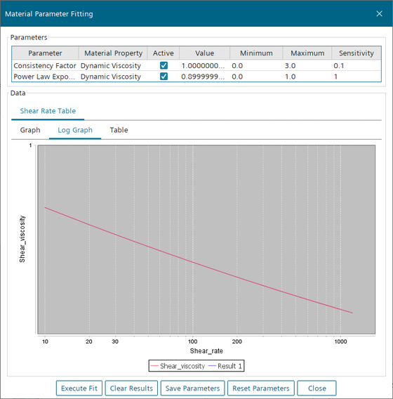 曲线拟合的结果将出现在参数列表中。 也会显示新曲线,但拟合是如此接近,它可能不可见。 它在图形选项卡中被标记为结果 1。
