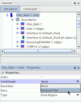 Simcenter STAR-CCM+ assumes that you are modeling a fluid film on the surfaces of a volume that contains a background fluid. While the background fluid occupies a regular region, the fluid film must flow in a three dimensional shell region.
