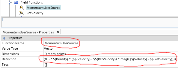 某些情况下您需要提供源项来补充流方程,Simcenter STAR-CCM+ 会区分这些源项,只要它们是通过使用受支持的物理量和运算符的场函数定义的。