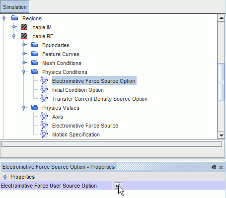 - 选择区域的物理条件文件夹中的电动势源选项节点。