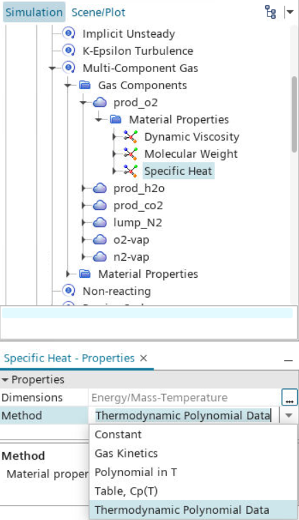 对于每个气体组分,选择节点,然后将方法设为热力学多项式数据。