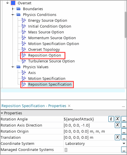 重定位模型在模拟初始化时向区域的体网格表示添加变换。即,变换适用于新模拟或清除了求解的模拟。在一些自动化模拟或设计探索研究中,目标是获取一系列模拟的结果,其中每个模拟中一个部件的相对定位会发生变化。例如,翼型具有变化的攻角。使用重定位模型,可以将重叠区域中变化的几何包面,然后使用区域上的重定位指定内容定义每个新模拟轮次开始时的方向。