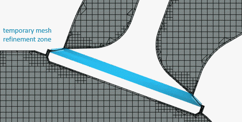 Within these zones, Simcenter STAR-CCM+ In-cylinder refines the surface mesh and reduces the thickness of the prism layers near the walls.