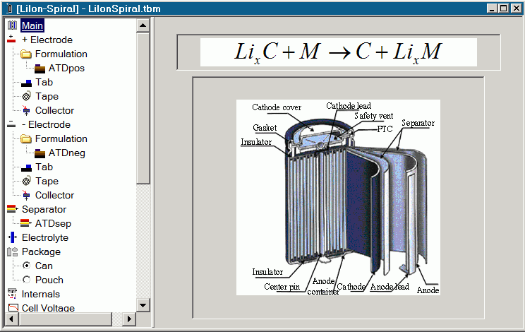 在 Simcenter Battery Design Studio 中新建螺旋电芯时,工作区中将显示电池定义窗口: