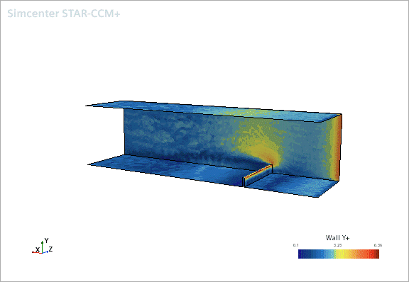 可视化结果 查看矢量和标量场景。 激活矢量场景 1 屏幕以查看速度矢量场。 单击标量场景 1 屏幕对应的选项卡以查看壁面上的 y+ 分布。 最大 y+ 值为 6.3311(在障碍物顶部)。但对于绝大多数流态,y+ 值低于 3.0,这是精确检查壁面数据时认为可接受的最大值。