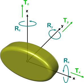无约束的 3D 刚体通常称为 6 自由度(6 个自由度)体。 无约束 2D 刚体的自由度数减少到三个,该刚体只能沿定义 2D 平面的两个轴平移和围绕垂直于平面的轴旋转。