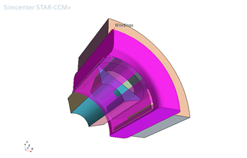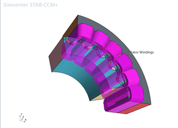 对于导入的 3D 几何体(热模型),Simcenter STAR-CCM+ 根据相应 2D 几何图形的磁极线圈体(EMAG 部件)构造 3D 转子磁场绕组。转子绕组始终构造为单齿绕组。