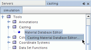 右键单击节点,然后选择铸造材料数据库编辑器。