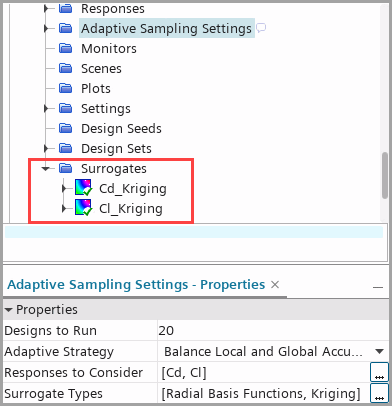 每个响应都会获得一个替代模型。自适应采样算法在两种可能的类型中指定了替代模型类型克里金。