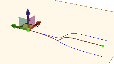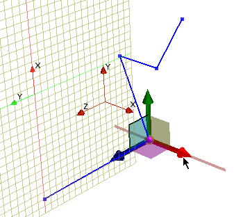 As you move the mouse pointer over each direction arrow on the triad, these become highlighted and display a projection line (shown for the red triad axis in the following example) if you can move the point. If you cannot move the point due to some constraint, no projection appears on the triad axis.