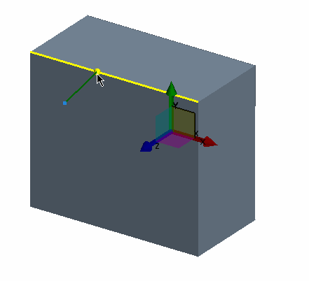 (Pick on Geometry) means that when the mouse pointer moves over edges or faces of existing geometry, the nearest edge or face changes color to show that it is the active location for the point. For an edge, the yellow point is constrained along the highlighted edge for as long as the mouse pointer remains close to the edge.