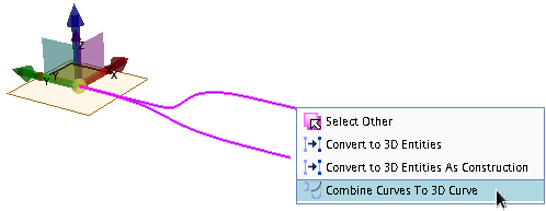 - Right-click on one of the 2D curves and select Combine Curves to 3D Curve.