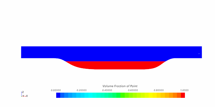 由于此模拟涉及实时移动部件,因此选择了隐式非稳态求解器。将涂料和空气混合物作为应用流体体积 (VOF) 模型的多相流体进行求解。