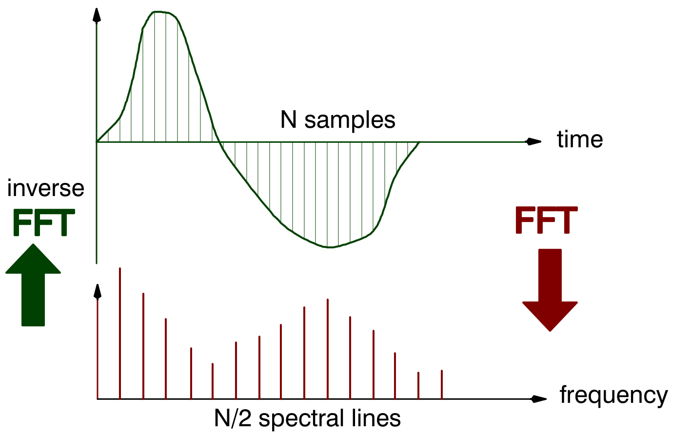 Such a time record of N samples is referred to as a block of data with N being the blocksize. N samples in the time domain converts to N/2 spectral (frequency) lines. Each line contains information about both amplitude and phase.
