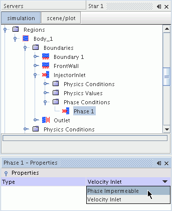 - 在流体边界上,选择相条件管理器中的边界节点的相表示。