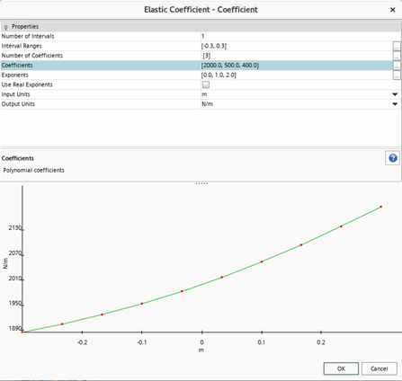 Specifies the damping Coefficient as a polynomial in terms of the relative end point velocity. Click on the custom editor to edit the polynomial within a plot.