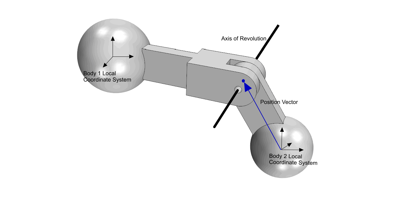 A revolute joint—sometimes also called a pin or hinge—lets you couple two 6-DOF bodies that move relative to each other as part of a multi-body motion. The revolute joint allows a single relative rotation of the two 6-DOF bodies around the axis of revolution. All other relative rotations and translations are restricted.